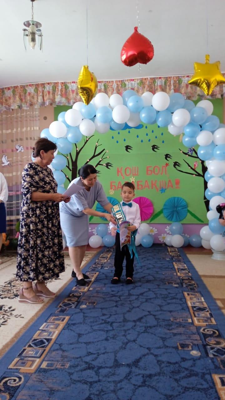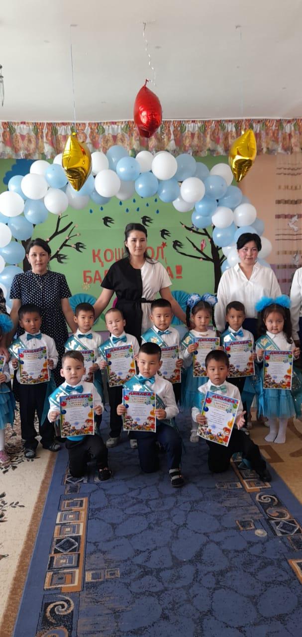 Мамырдың 26- сы күні "Қош бол балабақша" атты ертеңгілігіміз өтті.Мектебіміздің директоры Альбина Нұрланқызы балаларды құттықтап өзінің жақсы тілектерін айтты.Балалар тақпақтарымен, әндерімен,билерімен өнерлерин көрсетті.Ата- аналар балалардың өнерлеріне тәнті болып қайтты.