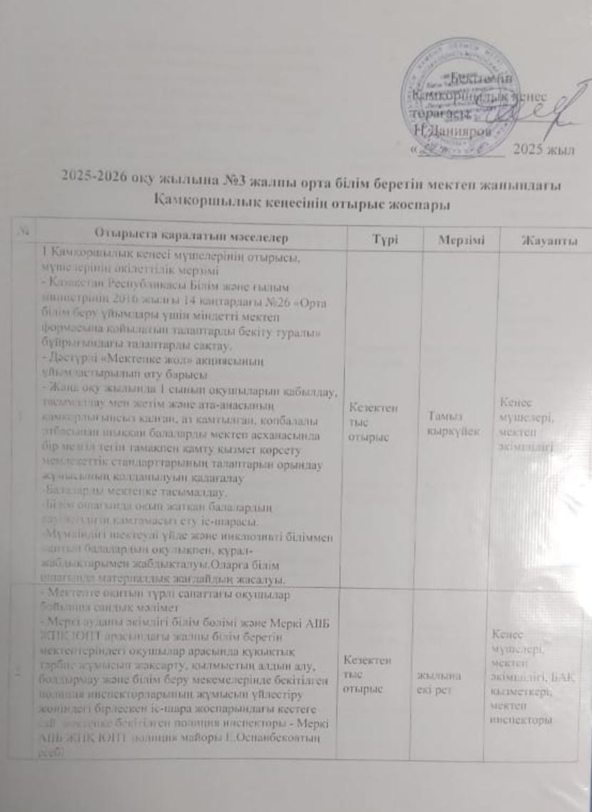 05 сентябрь 2025 0 1 2 3 4 5 №3 жалпы орта білім беретін мектеп жанынан құрылған Қамқоршылық кеңес мүшелері