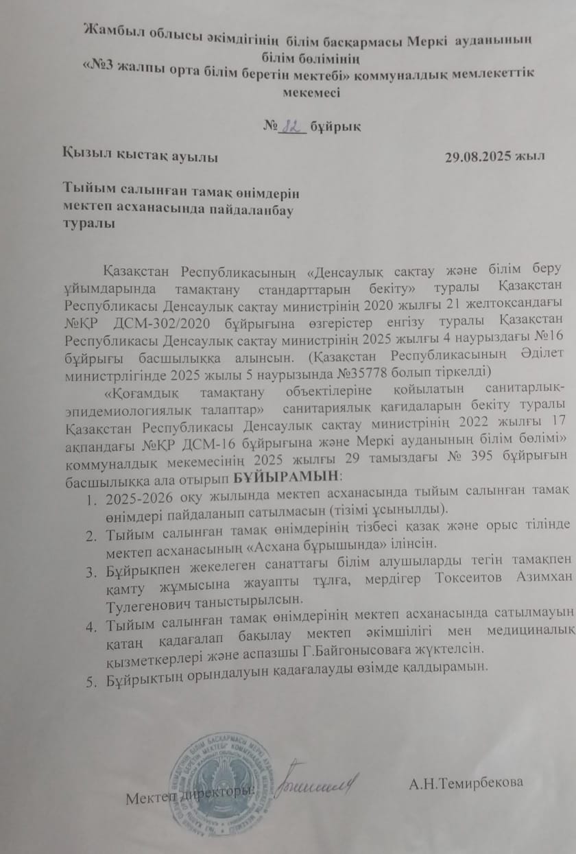02 сентябрь 2025 0 1 2 3 4 5 2025-2026 оқу жылында білім ошағында ауыз су режимін ұйымдастыру туралы.